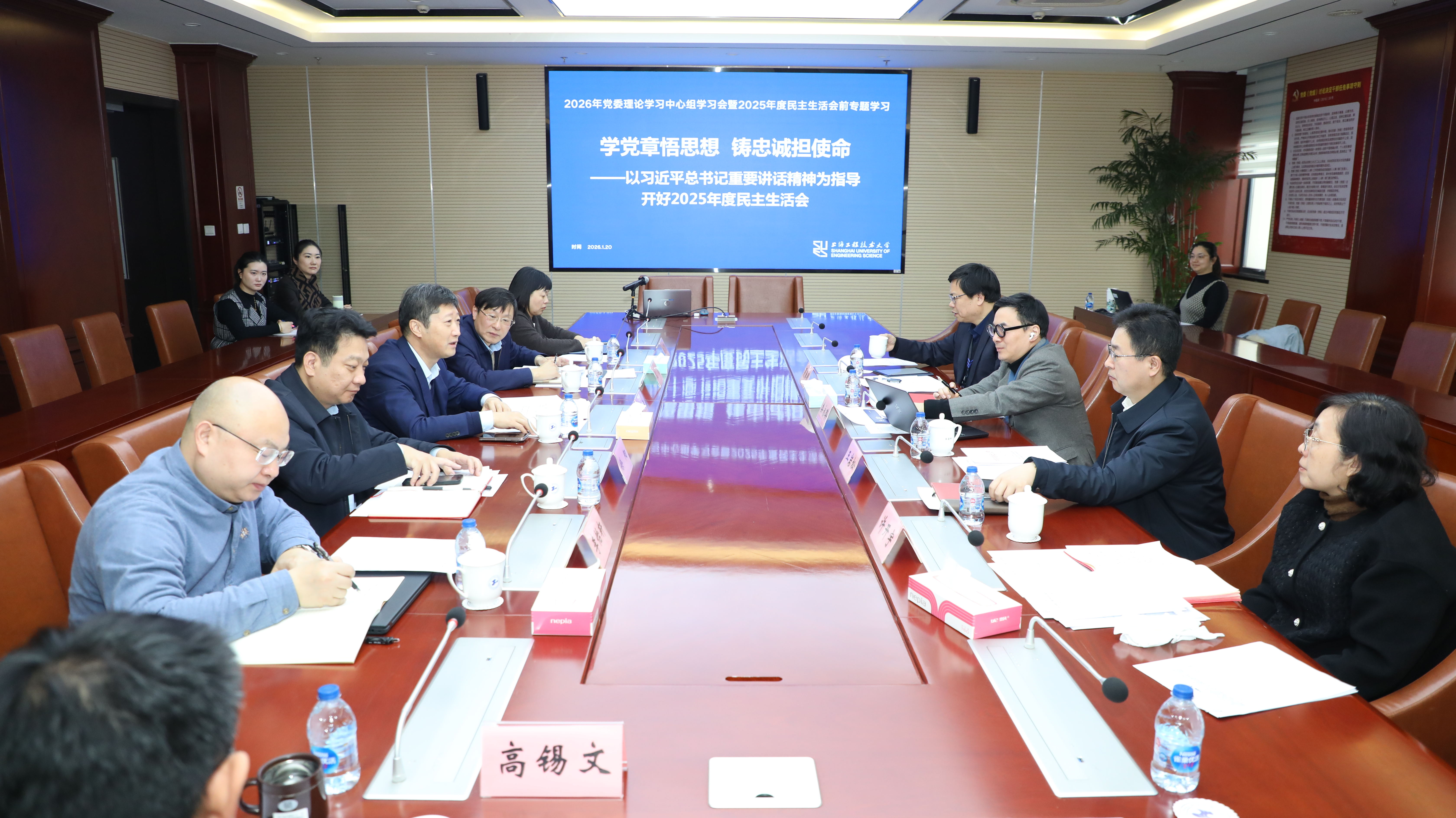 “勇于自我革命,是我们党最鲜明的品格,也是我们党最大的优势。”为深入学习贯彻党的二十大和二十届历次全会精神,巩固拓展学习教育成果,根据上级党委统一部署,1月22日,校党委领导班子在长宁校区科创楼725会议室召开2025年度党员领导干部民主生活会。市委第二十七督导组有关同志到会指导并作点评。校党委书记李江主持会议,全体校领导出席会议。会前,学校党委周密部署,扎实做好各项准备工作。通过采取中心组学习、党委常委会集中学习研讨与班子成员自学相结合的方式,把学习贯彻习近平新时代中国特色社会主义思想和党的二十届四中全会精神贯穿民主生活会始终,做到七个方面“学习领会贯彻”和及时跟进学习相结合;采取座谈访谈、书面征询、设立意见箱、网络征询等方式,广泛征求基层党组织、党员干部、师生代表及民主党派意见建议;深入开展谈心谈话,做到“五必谈”,充分交流思想、凝聚共识;结合反面案例剖析举一反三,在此基础上,认真撰写班子对照检查材料和个人发言提纲,为开好民主生活会奠定坚实基础。会上,李江通报了深入贯彻中央八项规定精神学习教育整改整治情况、2024年度民主生活会暨巡视整改专题民主生活会整改落实情况及本次会议征求意见