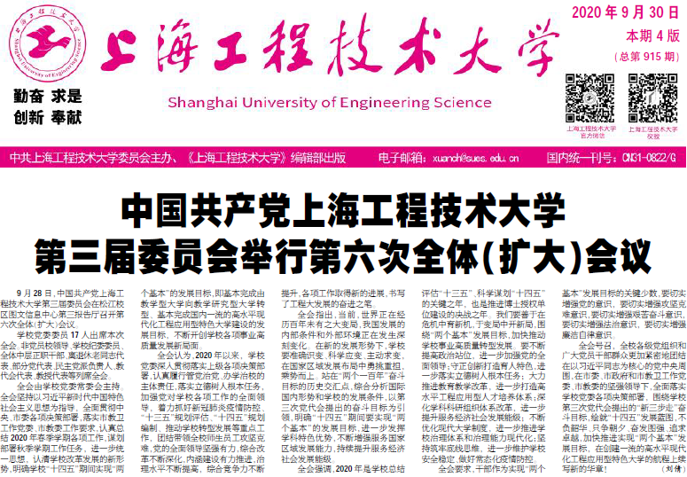 中国共产党上海工程技术大学第三届委员会举行第六次全体(扩大)会议
