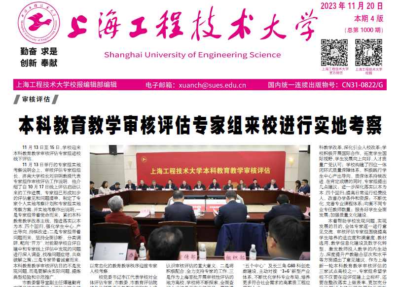 11月20日.pdf第一版【审核评估】本科教育教学审核评估专家组来校进行实地考察11月13日至15日,学校迎来本科教育教学审核评估专家组进校线下评估。11月13日举行的专家组实地考察说明会上,审核评估专家组组长、济南大学校长刘宗明教授代表专家组作审核评估工作说明。他介绍了自10月17日线上评估启动以来的工作进展,专家组已形成初步的评估意见和问题清单,制定了专家个人实地考察计划和专家组实地考察方案,并实地考察作出说明:一是专家组带着使命而来,紧扣本科教育教学改革主线,推进落实以本为本、四个回归,强化学生中心、产出导向,持续改进;二是专家组带着问题而来,坚持全面诊断,分类调研,靶向“开方”。对前期学校自评自建中和专家线上评估中发现的问题进行深入调查,找准问题症结,共商破解之策;三是专家带着诚意而来。本科教育教学审核评估目的不是发现问题,而是要解决实际问题,提炼典型经验和示范推广。市教委督导室副主任傅建勤肯定了学校在前期线上评估中建立的快速响应工作机制,同时指出,开展审核评估既是学校本科教育教学工作质量和水平的鉴定,也是促进学校更新教育教学理念,深化教育教学改革,进一步明确发展方向,向着更高