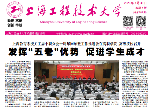 3月30日.pdf第一版上海教育系统关工委中职分会十周年回顾暨工作推进会在高职学院、高级技校召开发挥“五老”优势促进学生成才3月22日,上海市教育系统关工委中职分会十周年回顾暨工作推进会在高职学院、高级技校召开。会前,上海工程技术大学党委书记李江与市教育系统关工委一行交流座谈。市教育系统关工委主任、市教卫工作党委原书记李宣海,市教育系统关工委执行主任、市教卫工作党委原副书记、市教委原副主任高德毅,上海工程技术大学党委副书记、工会主席史健勇,市教育系统关工委副主任陈其昌、副主任兼中职分会主任王向群等出席会议并讲话,中职分会全委会全体成员,各校关工委主任、常务副主任参加会议。李江书记与李宣海主任、高德毅主任等进行亲切交流,就校关工委发挥老同志的独特优势,落实立德树人根本任务、推进学校建设等方面进行探讨。高德毅主任表示,十年来,中职分会在自身组织建设、制度完善、学习培训、理论研究、品牌创建、论坛举办、社会影响等方面一直处于全市教育系统关工委前列,成效显著。新时代关心下一代工作责任重大、意义深远。要借鉴高校和普教经验、紧密结合中职学生特点、构建合力机制、关注学生心理健康教育,扎扎实实做好工作。