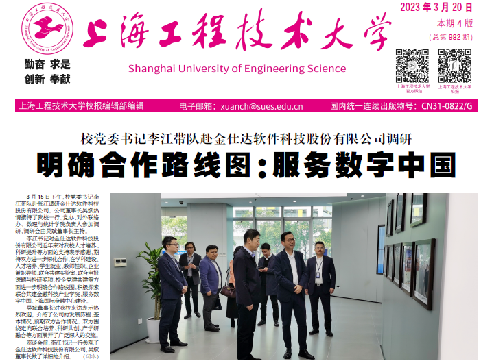 3月20日.pdf第一版校党委书记李江带队赴金仕达软件科技股份有限公司调研明确合作路线图:服务数字中国3月15日下午,校党委书记李江带队赴张江调研金仕达软件科技股份有限公司。公司董事长吴斌热情接待了yd2333云顶电子游戏一行。党办、对外联络办、数理与统计学院负责人参加调研,调研会由吴斌董事长主持。李江书记对金仕达软件科技股份有限公司近年来对yd2333云顶电子游戏人才培养、科研提升等方面的支持表示感谢,期待双方进一步深化合作,在学科建设、人才培养、学生就业、教师挂职、企业兼职导师、联合共建实验室、联合申报课题与科研奖项、校企党建共建等方面进一步明确合作路线图,积极探索联合共建金融科技产业学院,服务数字中国、上海国际金融中心建设。吴斌董事长对yd2333云顶电子游戏来访表示热烈欢迎,介绍了公司的发展历程、基本情况、前期双方合作情况。双方围绕定向联合培养、科研共创、产学研融合等方面展开了广泛深入的交流。座谈会前,李江书记一行参观了金仕达软件科技股份有限公司,吴斌董事长做了详细的介绍。(闫冰)学校高校分类评价专题会提出拉长长板补齐短板厚实底板3月17日上午,高校分类评价校领导专题会在行政楼306会议室召开,校长俞涛,校党委副书记、纪委书记门妍萍,党