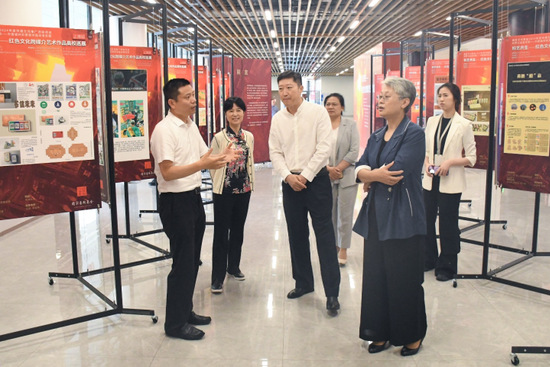 上海市文创办专职副主任强荧、上海工程技术大学领导门妍萍、国家艺术基金上海项目管理办公室副主任夏萍分别致辞后,与会人员通过视频一起回顾了巡展长春站、江西站、嘉兴站、重庆站的精彩旅程。同时,开展了由华东师范大学沈榆教授带来的“初心与使命——共产党领导中国工业化进程中的艺术设计”以及由同济大学范圣玺教授带来的“艺科融合的创新实践”红色文化主题讲座。