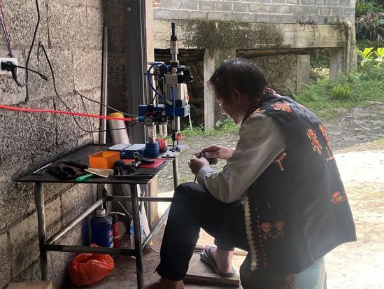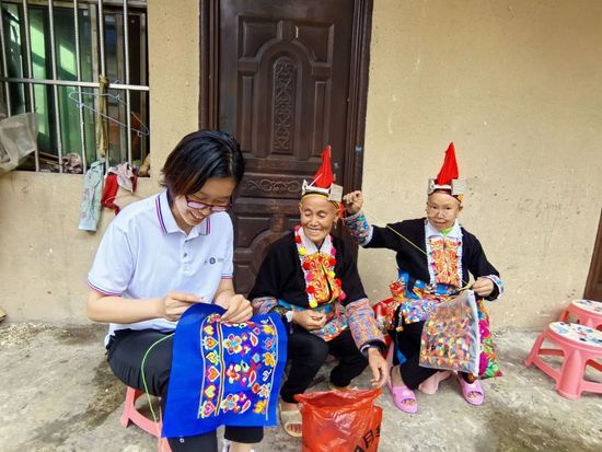 在瑶族银饰工艺之乡的金平县金水河镇子水碓冲村,实践团成员认真了解当前瑶族银饰工艺遇到的传承与发展等问题。