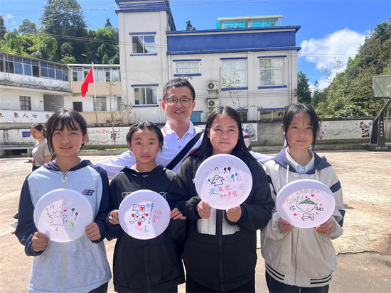 来自马克思主义学院的研究生黄菊同学将心理健康教育与爱国主义教育相结合,为金平乡村的小朋友们讲解国旗、国徽、国歌,通过拼图游戏等方式,带领孩子们认识中国地图,在寓教于乐中解读家国情怀。