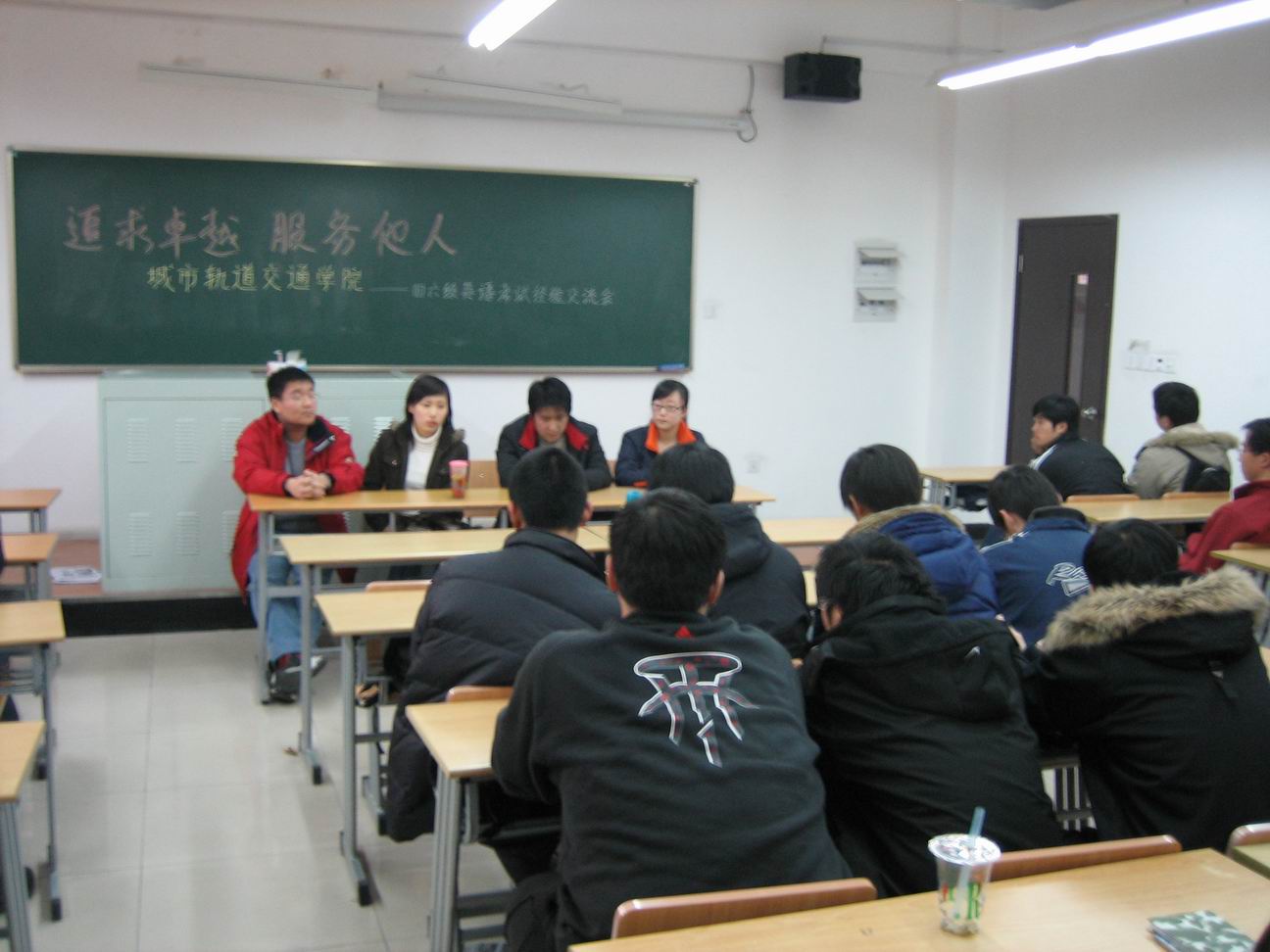 3月7日晚,城市轨道交通学院在教学楼B415举行了大学英语四、六级考试经验交流及英语学习互助结对活动。此次活动是我院学习雷锋精神系列活动的生动体现。以优异成绩通过全国大学英语四、六级的我院三位同学,利用自己的休息时间,把自己的英语学习经验和顺利通过全国大学英语四、六级的一些新得体会毫无保留地与同学们进行了交流,希望他山之石,可以攻玉,帮助我院学生通过一段时间的借鉴和学习,以优异成绩