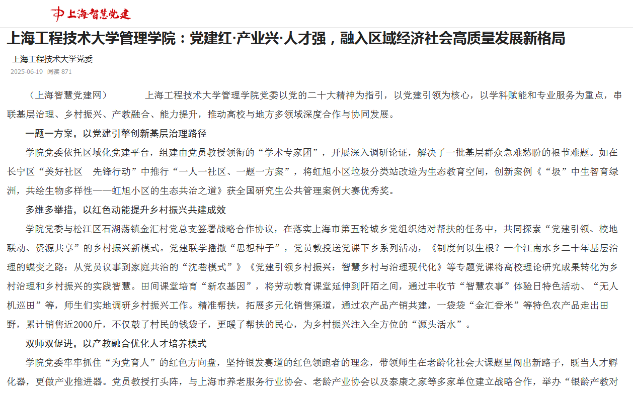 上海工程技术大学管理学院:党建红·产业兴·人才强,融入区域经济社会高质量发展新格局