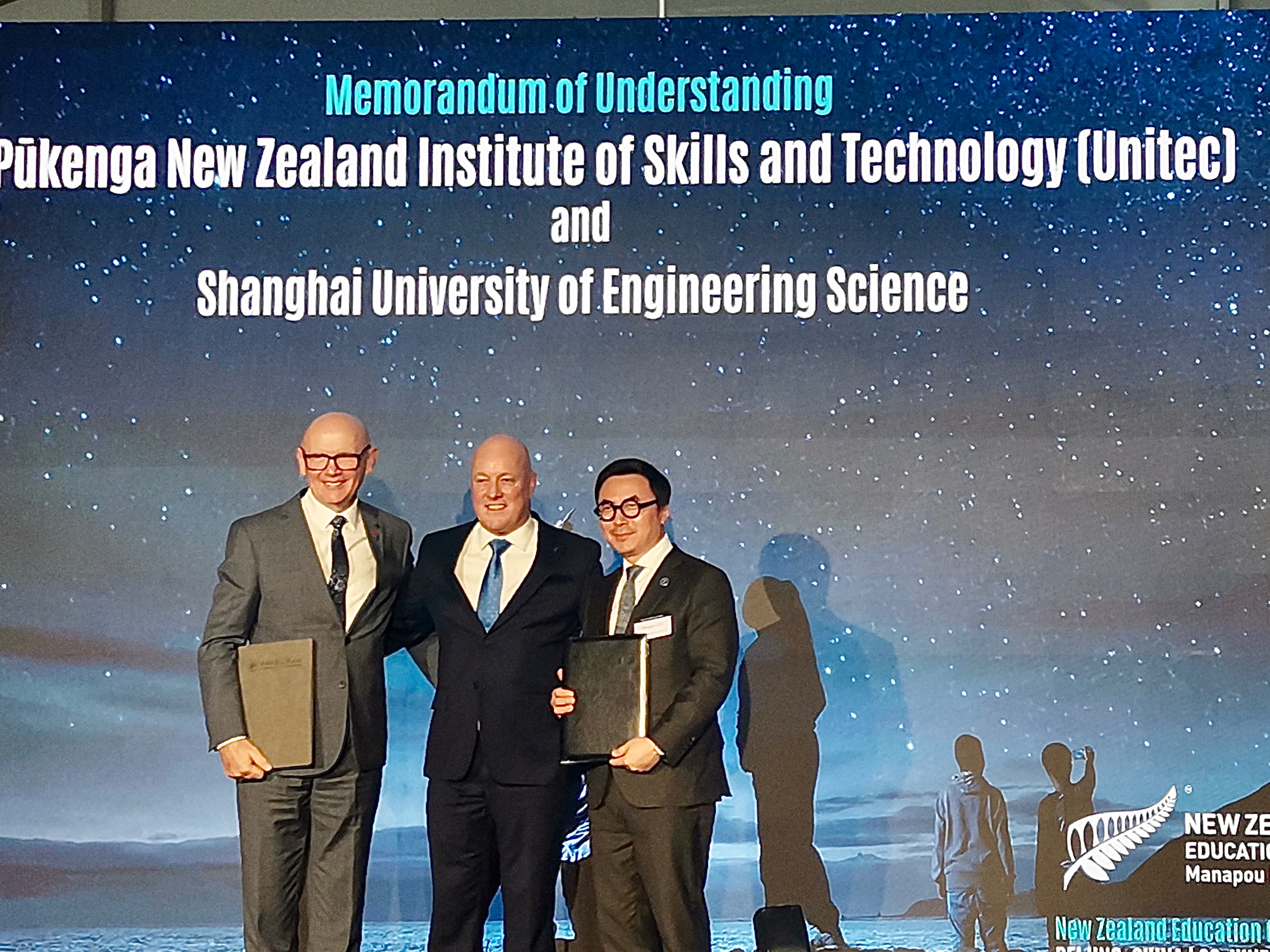 6月20日,校长娄永琪、副校长夏春明受邀出席新西兰驻华大使馆举办的“New Zealand Education Connect”(NZEC)活动,共襄中新教育合作盛举。此次活动以见证新西兰与中国教育合作协议签署、庆祝两国教育合作成果为核心,在深化中新人文交流、推动两国关系发展的大背景下展开,为中新教育领域的合作搭建了坚实桥梁。新西兰总理克里斯托弗·拉克森亲临活动现场并发表讲话。拉克森对中新两国在教育领域的友好交流与合作成果给予高度评价,明确表达了愿与中方秉持相互尊重、相互理解的原则,进一步深化旅游、教育等领域人文交流,推动两国关系迈向新高度的积极意愿。上海工程技术大学与新西兰联合理工学院交换合作谅解备忘录及学生交换协议在新西兰院校与中方院校的签约仪式上,娄永琪与新西兰联合理工学院校长Gus Gilmore交换了合作谅解备忘录及学生交换协议,拉克森亲自见证了这一重要时刻。新西兰总理克里斯托弗•拉克森与上海工程技术大学校长娄永琪合影其间,yd2333云顶电子游戏与新西兰总理代表团的教育代表进行会谈,就开展学术交流、师生互访、联合科研等方面达成意向,力求在更多领域深化合作,实现资源共享与优势互补。此次合作标志着