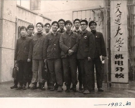78届纺织专业学生华纺分院门口合影
