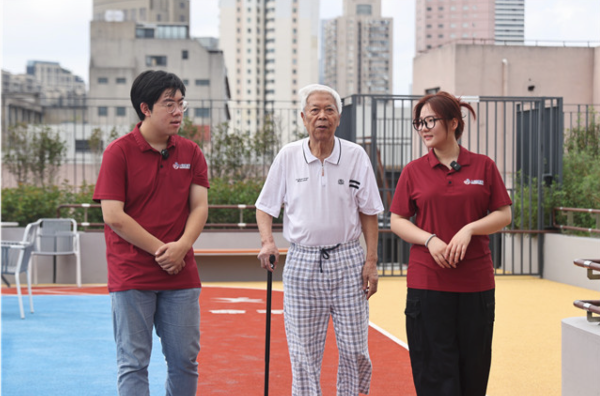 80多岁的徐老伯之前突发脑梗后需要恢复修养,也住进了养老院,但养老院的生活超乎了预期。除了每天满满的安排外,太阳落山后,周钰晨会陪着老人在屋顶花园里散一会儿步,听他讲讲之前的故事。对于这群年轻人的陪伴,徐老伯由衷称赞:“真的很好,就像自己的子女,很聊得来。”