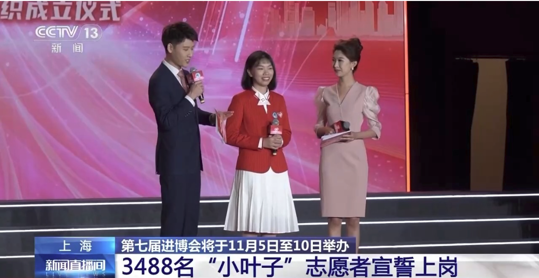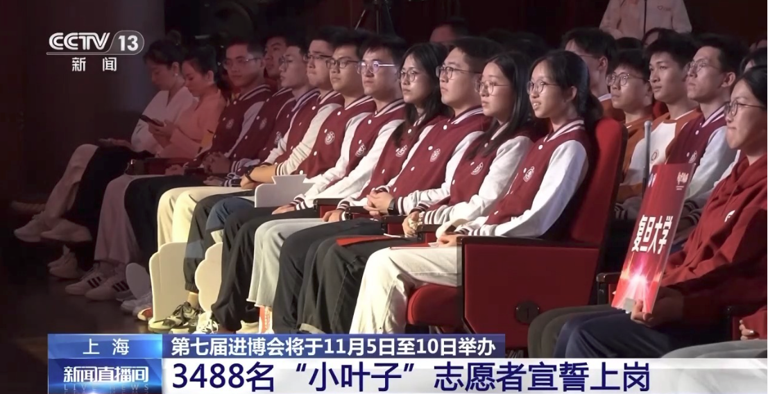 第七届中国国际进口博览会将于11月5日至10日在上海举办。进博会的志愿者们有一个好听的名字“小叶子”,象征着志愿精神,甘当绿叶,做好服务。10月15日,第七届进博会的3488名志愿者一起进行了上岗宣誓。
