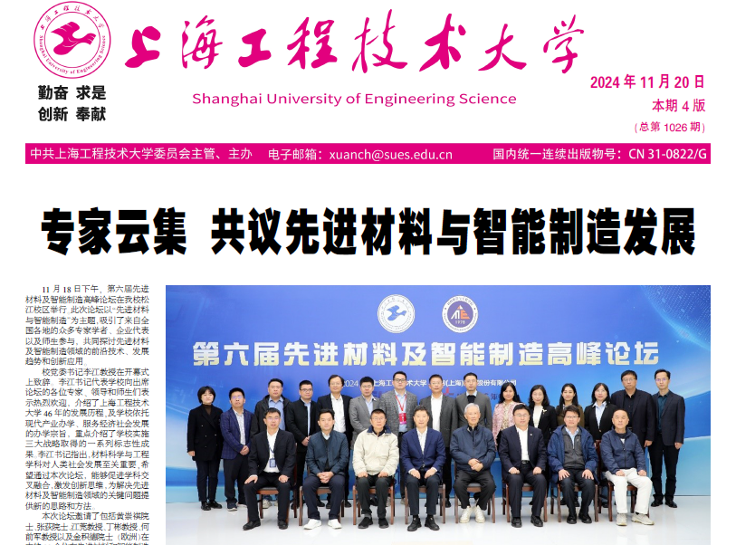 11月18日下午,第六届先进材料及智能制造高峰论坛在yd2333云顶电子游戏松江校区举行。此次论坛以“先进材料与智能制造”为主题,吸引了来自全国各地的众多专家学者、企业代表以及师生参与,共同探讨先进材料及智能制造领域的前沿技术、发展趋势和创新应用。