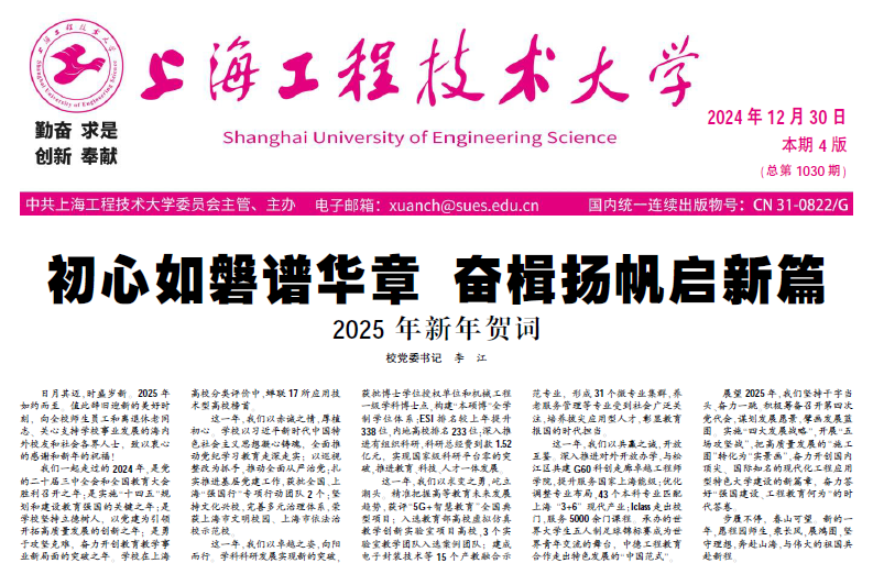 展望2025年,我们坚持干字当头、奋力一跳。积极筹备召开第四次党代会,谋划发展愿景,擘画发展蓝图。实施“四大发展战略”,开展“五场攻坚战”,把高质量发展的“施工图”转化为“实景画”,奋力开创国内顶尖、国际知名的现代化工程应用型特色大学建设的新篇章,奋力答好“强国建设、工程教育何为”的时代答卷。