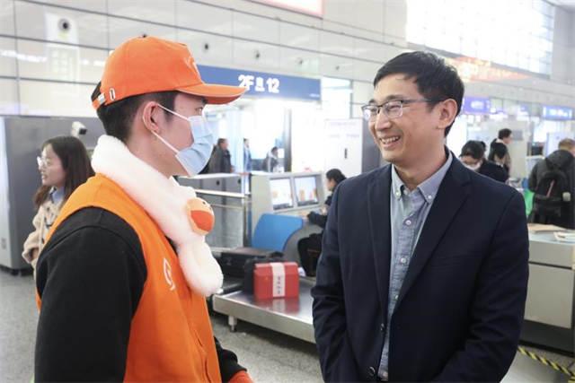 今年,上海松江站迎来了首次春运,来自东华大学工业设计专业的大三学生李志杰成为了这里的一名“小甜橙”志愿者。学校每年都有参与春运志愿服务的传统,李志杰就一直记挂在心上,这次看到大气漂亮的松江站“上新”,便第一时间报名加入,“虽然松江站的客流远不如虹桥站,但是松江站的建设带动了周边的商业和交通配套发展,也让很多人选择在这里踏上回家路,我也想设身处地地去体悟这样一个时刻,同时为春运贡献绵薄之力。”