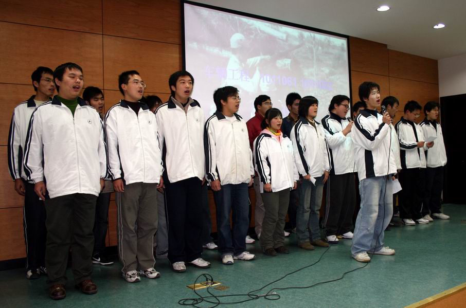 学院学生以专业为单位,分别演唱了《红旗飘飘》、《团结就是力量》、《东方红》、《到敌人后方去》、《黄河大合唱》、《三大纪律,八大注意》等脍炙人口的爱国主义歌曲,并在期间穿插了一二九运动和淞沪会战的相关介绍和图片及影片展示。 (李健) | |