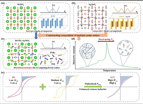 近日,材料科学与工程学院刘宏波副教授指导硕士研究生刘明昊在材料学科国际顶级学术期刊《Acta Materialia》上发表了题为“Superior energy-storage performance in BaTiO3-AgNbO3 binary relaxor via the competitions of multiple polar orders”的研究论文。刘宏波副教授、中国科学院上海硅酸盐研究所刘振副研究员、王根水研究员为通讯作者。论文的重要合作者还包括华东师范大学胡志高教授。
