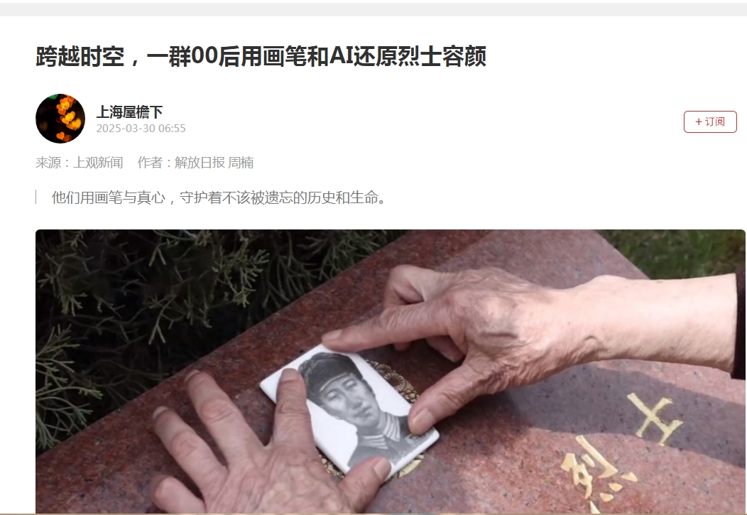 为吸引更多年轻人,团队尝试将红色IP与新媒体结合。他们计划在抖音、小红书开设账号,发布AI复原过程的短视频,并利用全息投影技术让烈士“现身”校园展览。2024年,团队还与龙华烈士陵园合作,将项目拓展至解放战争时期的英烈。“科技能让历史更鲜活,但核心永远是人的故事。”孟远航说。