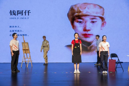 2023年,松江区新时代精神文明中心上演了一部名为《闪光如你》的微话剧。舞台上,学生演员与退伍军人共同演绎了蔡财根父子跨越七十年的“重逢”。剧中,蔡德奎抚摸墓碑上父亲的画像,哽咽道:“爸,我终于知道您长什么样了。”这一幕让台下观众潸然泪下。
