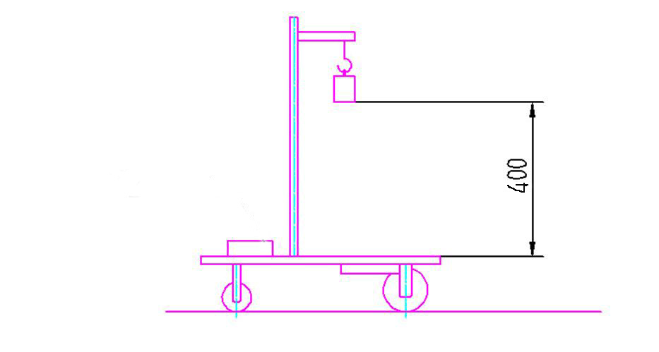 设计一种小车,驱动其行走及转向的能量是根据能量转换原理,由给定的重力势能转换而得到的。该给定重力势能由竞赛时统一提供的质量为1kg的标准砝码(ϕ50×65 mm,碳钢制作)来获得,砝码的可下降高度为400±2mm。标准砝码始终由小车承载,不允许从小车上掉落。图1为小车示意图。