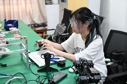 在机械创新基地内,木鸢Birdiebot战队的队员们正为RoboMaster机甲大师赛展开暑期“总攻”。没有枯燥的理论推演,只有真实的问题和挑战。机械组优化底盘结构,电控组调试供弹系统,算法组迭代视觉模型,策略组推演协同战术——每一个环节都是对课堂知识的深度激活。