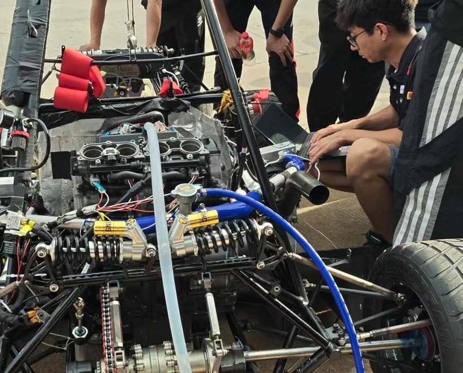 38℃的高温下,大学生汽车科创基地内热度更高!引擎声与金属切割声交织,奏响暑期攻坚的交响曲。有的车队运用空气动力学和动力工程知识,对赛车核心部件迭代升级;有的车队队员们在焊花中坚守,用汗水诠释工匠精神……