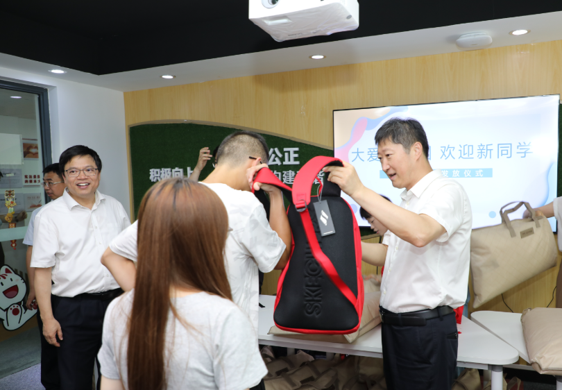 在研究生迎新点,李江鼓励研究生新生们要深耕学术领域、勇闯科研“无人区”,助力国家相关领域的进步与突破,并与学校首届博士新生代表合影留念。在“一站式”学生社区,校领导向困难新生代表赠送“新生大礼包”,并寄语新生保持向阳而生的乐观心态,锤炼精湛过硬的专业本领,在学科交叉中探索兴趣,把入学第一天的惊喜转化为大学成长的动力。校领导一行还来到学生宿舍区,实地察看人脸识别闸机装设情况,亲切慰问了宿管人员和新生代表。