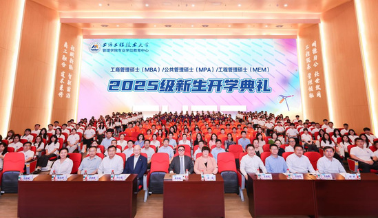 9月13日下午,上海工程技术大学2025级MBA/MPA/MEM新生开学典礼在长宁校区产教融合大楼一楼报告厅举行。校长娄永琪、副校长王岩松、校领导史健勇出席典礼;中欧国际工商学院院长、上工程管理学院专业学位教育中心专家委员会主席汪泓莅临指导;上海久有私募基金管理有限公司董事长、上工程管理学院专业学位教育中心专家委员会委员刘小龙应邀参加;相关职能处室负责人、管理学院党政领导、教师代表,共同携手2025级MBA/MPA/MEM新生开启学海新程。典礼由史健勇主持。