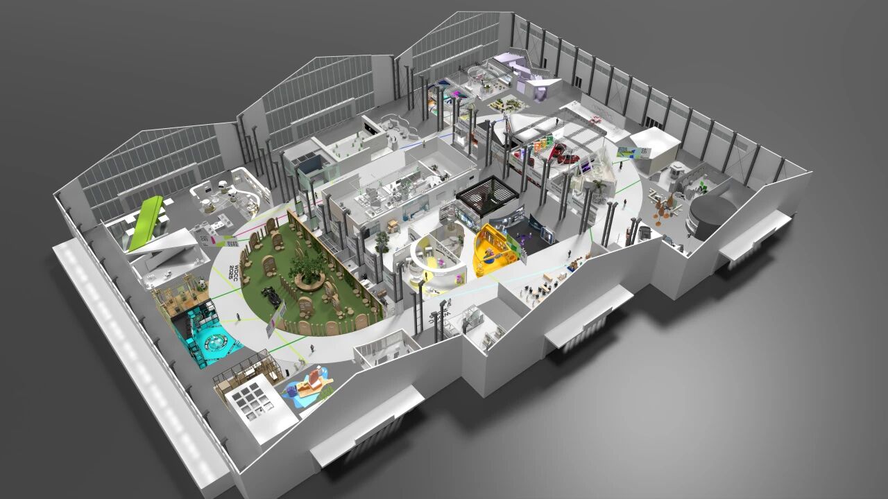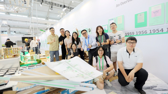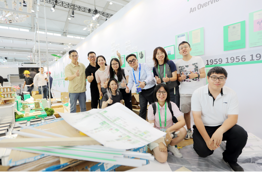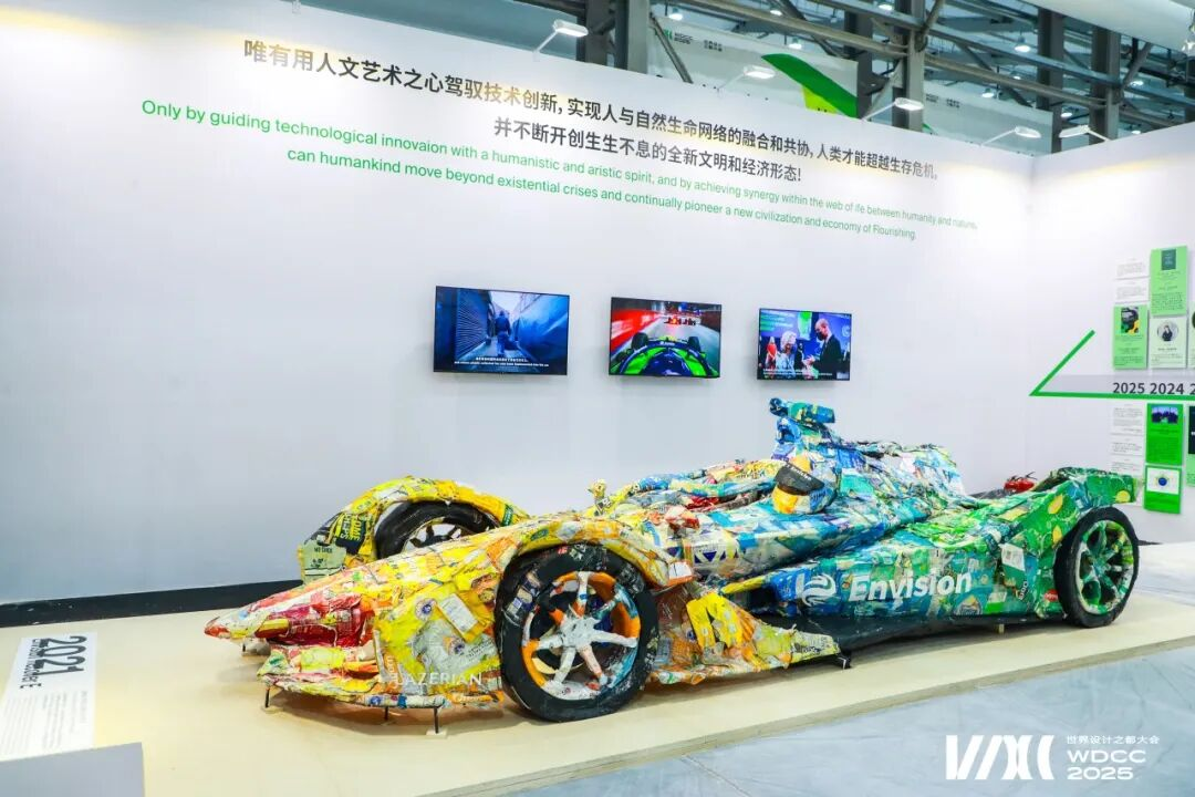 朱明洁博士等参与主题展、大会可持续设计指导。产业馆内打造了一条由回收鞋橡胶颗粒再造的环保跑道。跑道采用1m×20m再生橡胶卷材铺设,串联整个展馆参观动线。通过模块化设计,实现了快速安装。该项目有效减少废弃橡胶对环境的负担,并降低约5.385吨碳排放。生态跑道由中国建设银行上海分行和上工程教育发展基金会联合赞助,并将于展览后拆回上工程校园二次利用,变身为步道、坐垫或艺术装置,也将是可持续设计的一个现实教材。