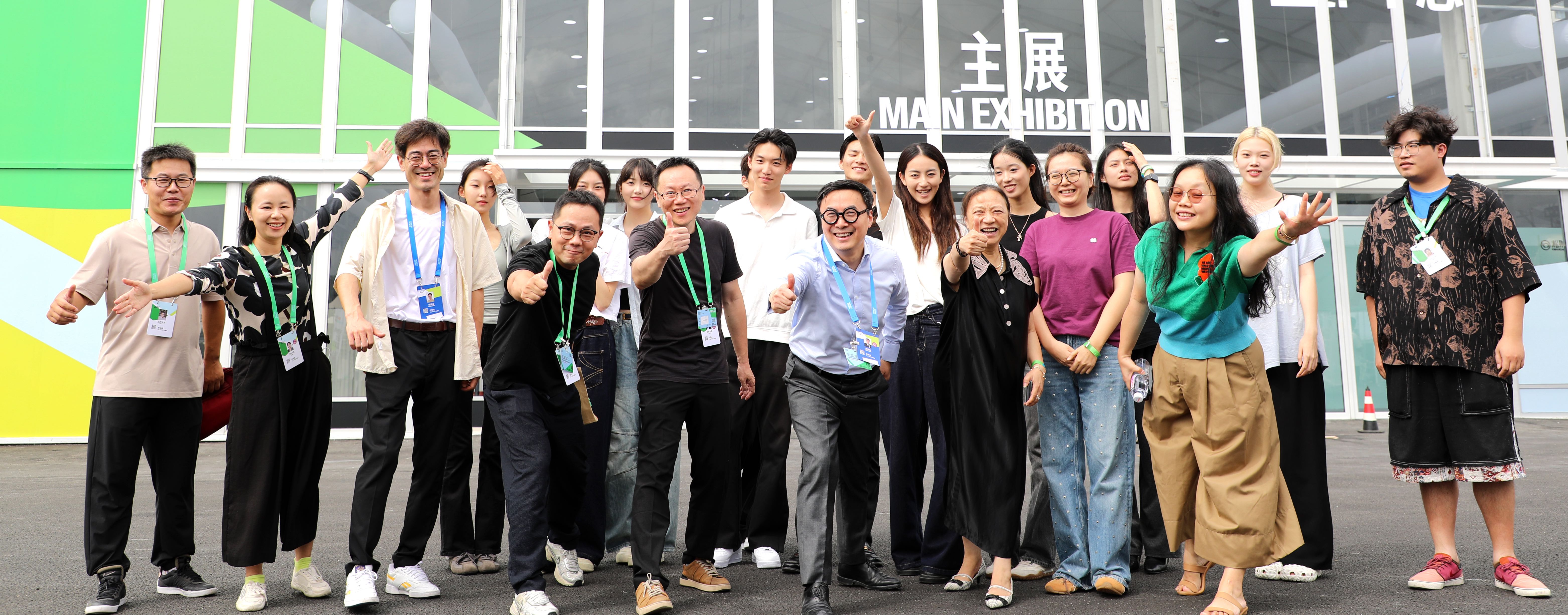 作为学校展示学科建设的重要窗口,众多师生通过大会展示风采。 姚惠副教授担任主展策展团队驻场总执行,负责主展空间设计和展区设计协调。团队针对场馆不对称结构深入分析后,提出“生态双轨+广场”的空间布展策略。设计团队经过反复勘场,精准设定两侧圆形展区半径,以跑道式动线串联“生产(橙)”“生态(粉)”“生活(紫)”三大板块,形成清晰而流畅的参观逻辑。