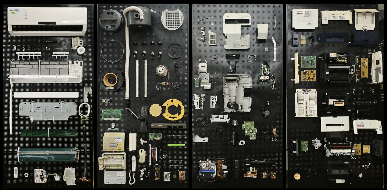 任钟鸣博士和孙巍老师及同学们一起合作完成主场馆装置设计“又生”。此作品用拆解展示的方式,给予校园内待报废和被遗弃的工业制品又一次生命。作品希望引发人们对生态、生产、生活和设计的再思考。快速工业化加快了产品更新迭代的速度,也加剧了废弃带来的生态压力,同时也可能促使人们陷入消费主义陷阱变得难以满足。“修修还能用”是否已被摒弃?企业的经济可持续是否要依靠计划性报废?生态设计或许是最好的解答,引领产业拆解回收再生产,消费者形成更可持续的生活方式,最终形成良性的循环生态。“设计如春风,春风吹又生。”