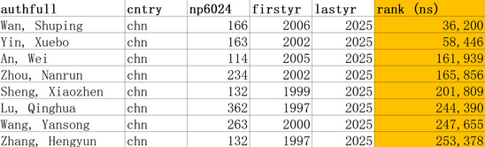 入选终身榜单的学者有:万树平、尹学博、安炜、周南润、圣小珍、卢庆华、王岩松、张恒运。