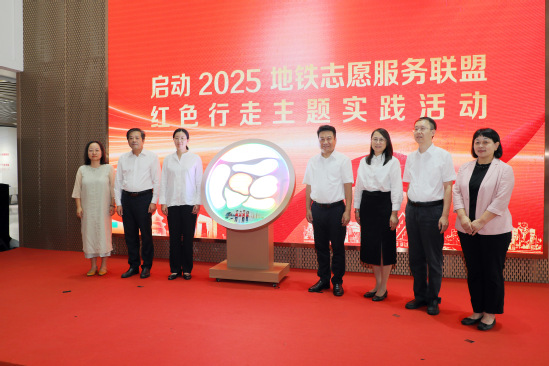 在全场嘉宾共同见证下,松江大学城七所高校领导一起启动2025上海大学生地铁志愿服务联盟红色行走主题实践活动。