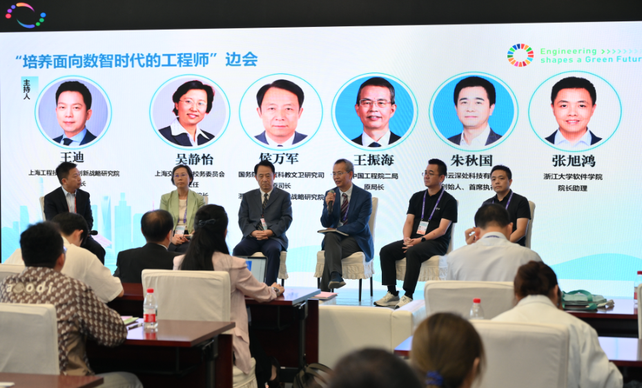 圆桌论坛环节由上海工程技术大学创新战略研究院执行院长王迪主持。中国工程院、浙江大学、上海交通大学的专家学者,云深处科技有限公司负责人等围绕“如何在数字经济与智能化浪潮中,改革工程教育体系,培养具备数字素养、跨界能力和工程师精神的未来工程师”这一核心问题展开深度讨论。