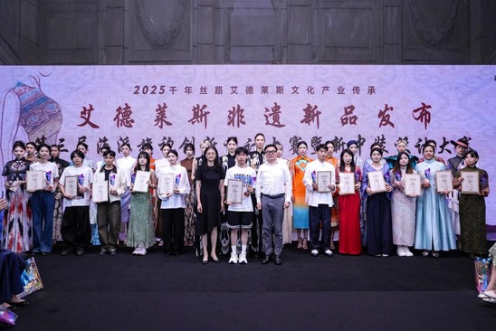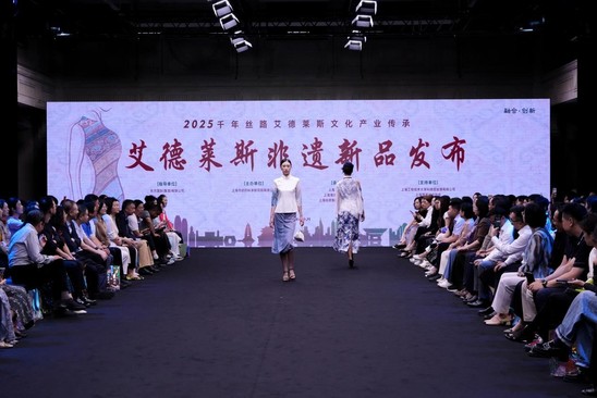 第三届海派旗袍创新设计大赛暨艾德莱斯新中装设计大赛以全球邀约场景新生为核心,延续生活旗袍、职业旗袍、礼服旗袍三大创作维度。青年设计师以创意使非遗服饰从“仪式标签”,成为日常穿搭的文化表达。艾德莱斯非遗新品发布环节以“丝路活化石的当代重生” 为主题,纺研院及丝绸集团发言人在发布中表示:“艾德莱斯非遗的产业化发展,是沪喀文化交流的重要成果。我们通过工艺改良与设计创新,让这一‘21 世纪最后的手工业’真正走进现代生活。”