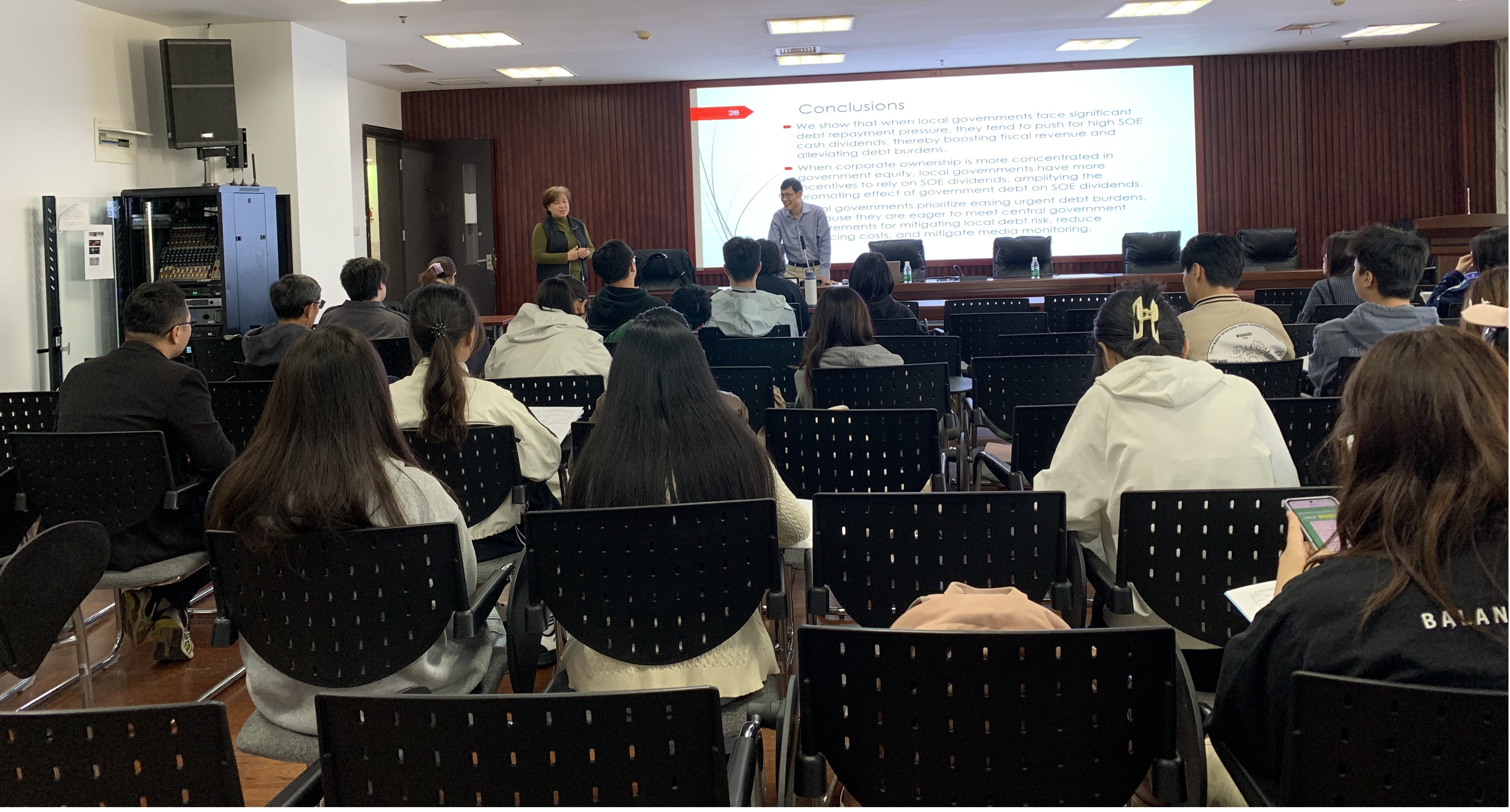 2025年10月24日下午,上海工程技术大学管理学院高端外国专家系列讲座在行政楼906会议室举行。本次讲座特邀yd2333云顶电子游戏聘请的国际名师、加拿大温莎大学ODETTE商学院金融学教授Yunbi An主讲,主题为政府债务、政府股权与国企现金分红。