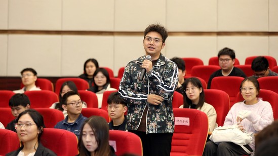 活动期间,娄永琪邀请龚湘伟、宋宇辰与在场师生共同交流,大家围绕职业规划、能力提升、场景实践、自身价值等话题热情互动。在职业规划方面,强调要跳出“内卷”思维,转为“外卷”视角,主动投身未来场景,将所学知识技能转化为有市场价值的产品,构建更具竞争力的职业发展路径;在能力提升方面,建议大家在深耕专业的同时,要善于提问与发现,寻找技术与产业需求的连接点,提升个人核心竞争力,从容应对未来的社会挑战;在场景实践方面,主张大学阶段要多观察他人、观察生活,将城市作为大型实践场域,在日常中积累社会认知;在自身价值方面,倡导学生要坚守自身独特性,在明晰个人志趣与特质的基础上,实现自身价值的自然彰显。与会嘉宾结合个人创新创业经历、专业领域等方面给予在场师生宝贵建议,现场掌声雷动。