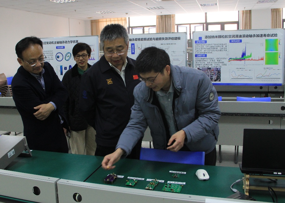 李东院士详细了解静电耦合边缘电场传感器研究进展,从颗粒带电、电荷测量、信号采集到传感器,查看传感器结构及电子电路设计实物,详细询问传感器监测性能和技术指标。李东院士指导未来多向领域专家请教和汇报研究进展,应用基础研究更贴合行业急需,科学问题更符合型号研制痛点难点,研究方法和技术路线更具体和可实施性,研究成果向航空发动机型号应用迈进。