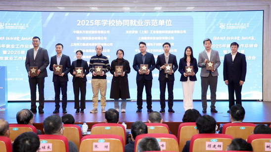 校党委副书记、纪委书记孟星为中国东方航空集团有限公司、宝山钢铁股份有限公司等17家企业颁发了2025年学校协同就业示范单位奖。