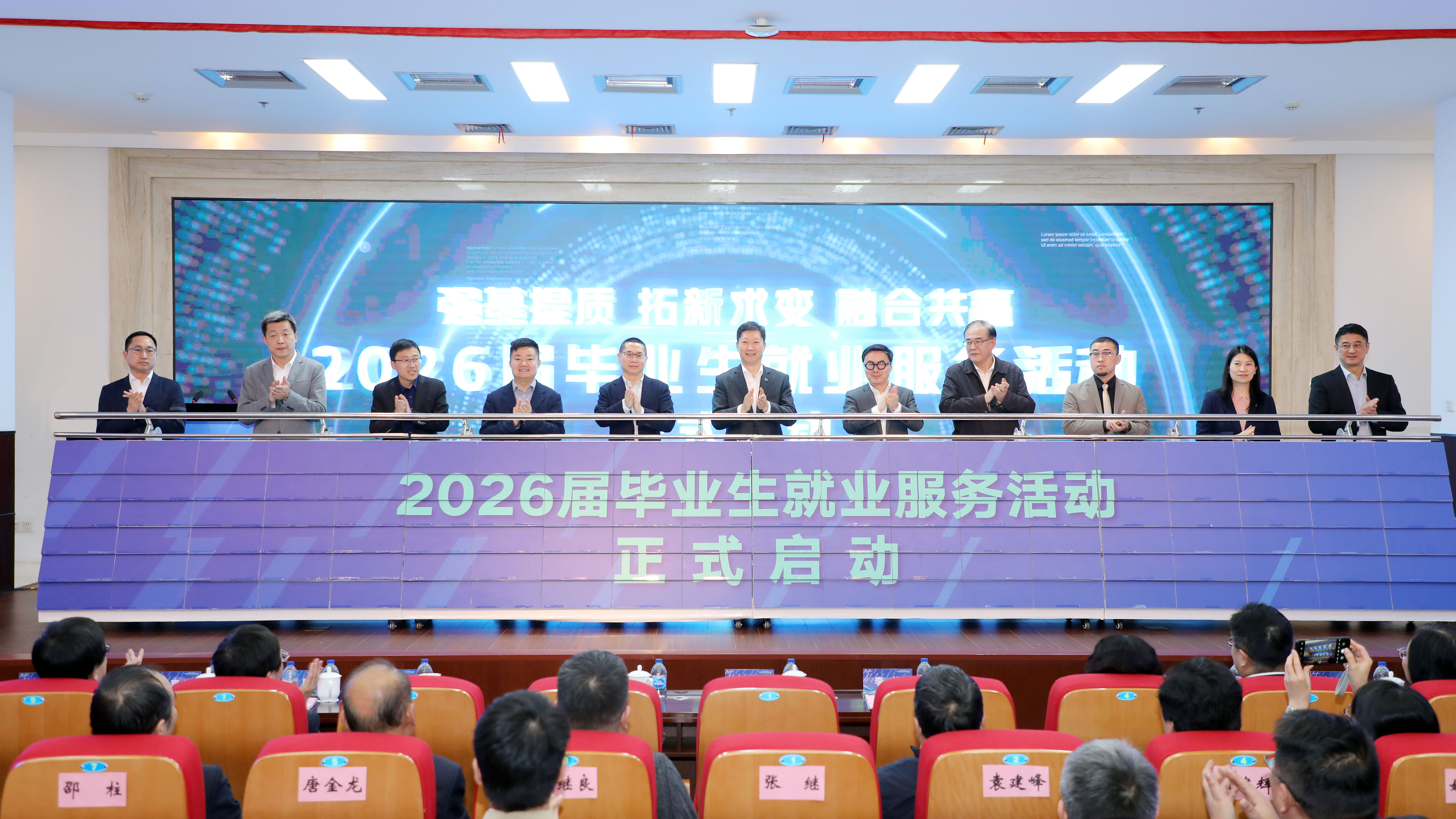 会上,校党委书记李江、校长娄永琪与政府、企业嘉宾共同启动2026届毕业生就业服务活动。学校以“强基”夯实人才培养根基、提升就业服务质效,以“拓新”开拓就业新赛道、创新工作新模式,以“融合”汇聚政校会企合力、实现多方发展共赢,为2026届毕业生就业工作注入强劲动能,进一步促进毕业生高质量充分就业。