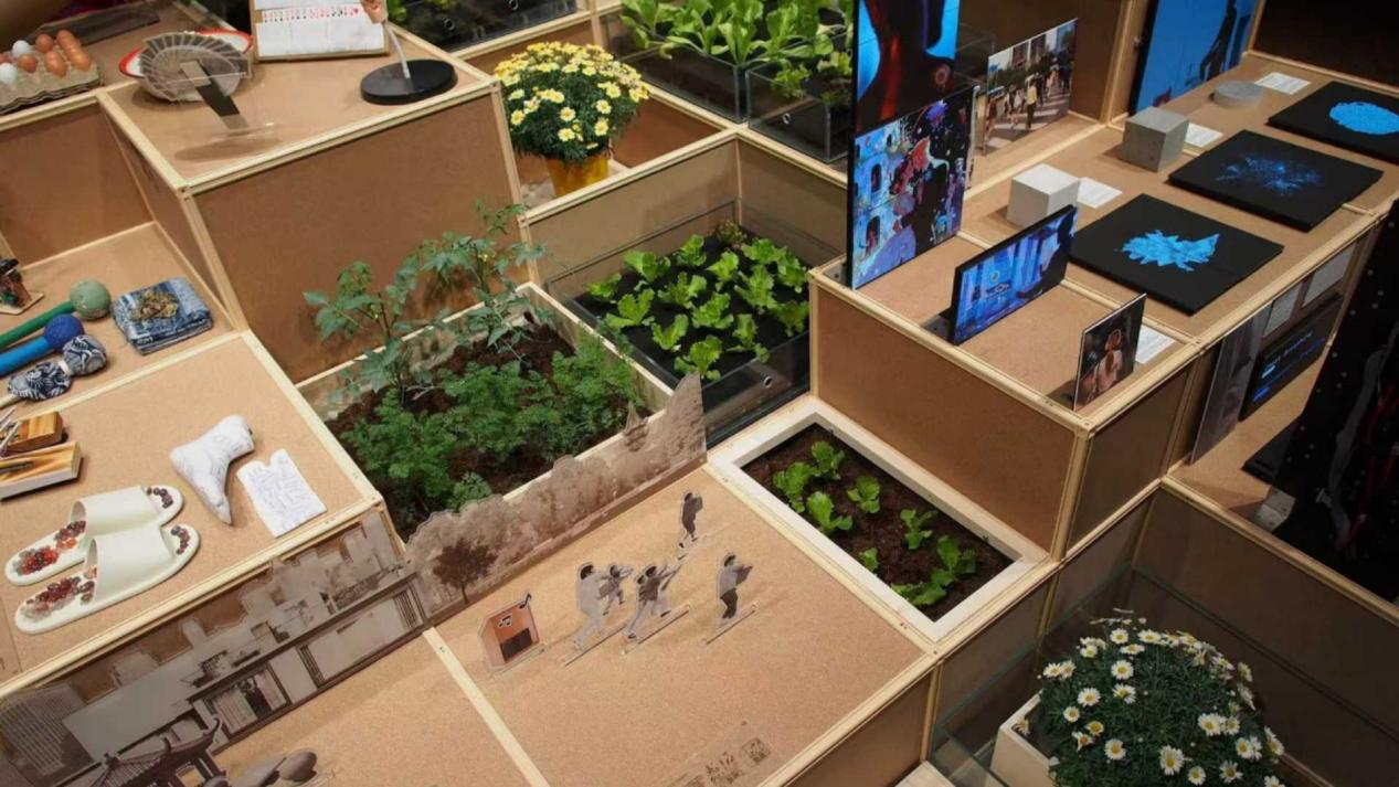基于这一理解,策展团队与来自同济大学、中国美术学院、清华大学、华东师大、南方科技大学等院校的师生共同工作,将展览划分为“生命网络”“大食物”“多元老龄”“空间生长”“调节平衡”五个主题。看上去彼此独立,实则共同构成了一条逻辑链:从粮食系统到老龄社会,从城市肌理到制度规则,不平等具体地嵌在每一个生活场景中。