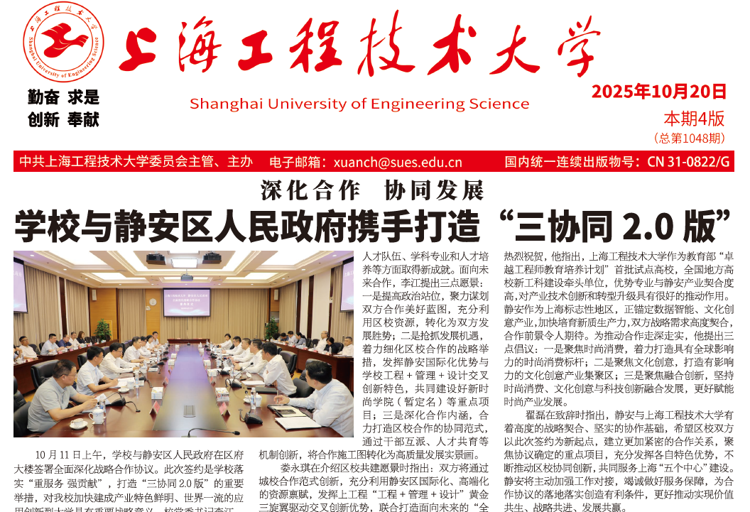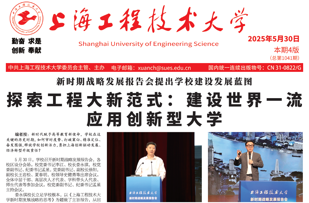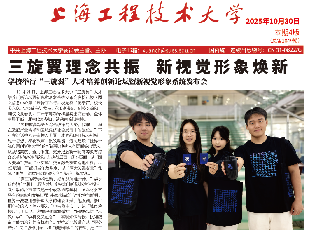 上海工程技术大学持续推进教育教学创新,不仅是对立德树人根本任务的扎实回应,更是为了培养出人工智能时代的应用创新型人才。学校将以“三旋翼”交叉融合为引擎,努力构建面向未来、充满活力的育人生态,让学生在行走中开阔眼界,在快乐学习中成长,在创新实践中闪光,走向更广阔的未来。(通识)