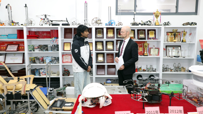 期间,Turo Kilpeläinen参观了西门子先进自动化技术联合示范中心、波音737-800模拟机项目、上海高校创新创业教育实验基地、创芯实验室等教学科研平台,并参观了艺术设计学科相关实验室,进一步加深了对yd2333云顶电子游戏办学特色和实践教学体系的了解。