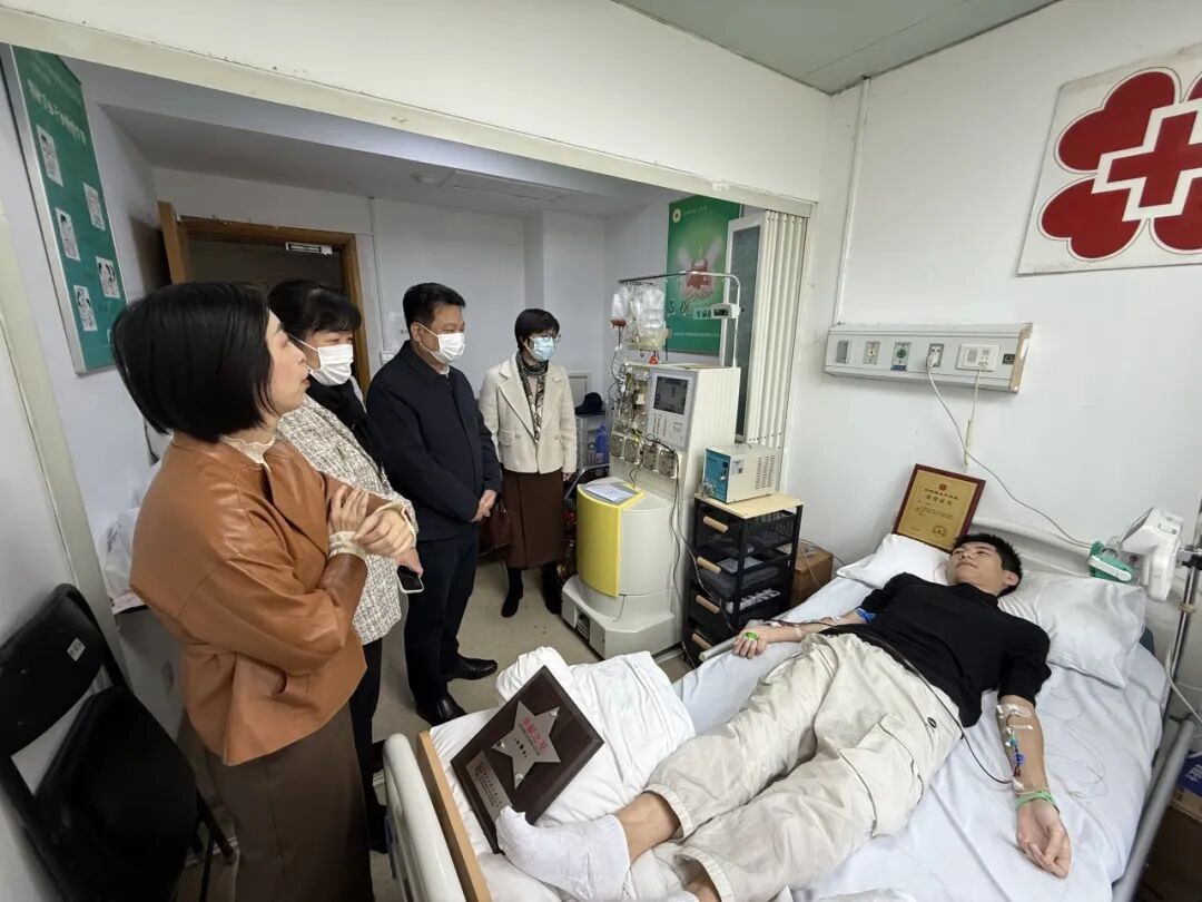 校党委副书记、副校长徐阳代表学校看望慰问陈一一及其家人。他详细了解了陈一一的身体反应及后续采集流程,并转达了学校对陈同学大爱之举的由衷敬意。他赞扬陈一一用善行诠释青年担当,强调学校将全程做其“后援团”,在学习、生活、康复等方面提供全方位支持,让其无后顾之忧。