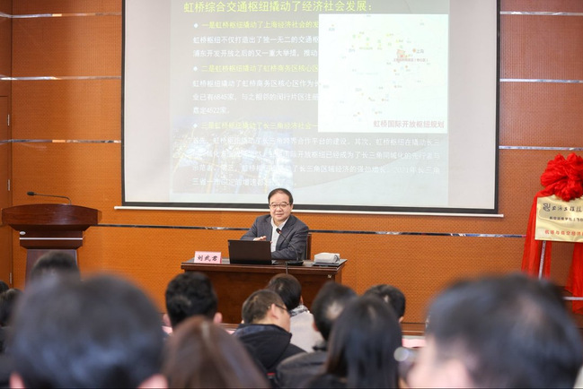 启动仪式后,刘武君为在场师生作了题为《虹桥枢纽规划与运营》的专题讲座。刘武君结合自身担任上海虹桥综合交通枢纽建设指挥部总工程师的丰富实践经验,深入剖析了大型综合交通枢纽在规划理念、设计建设与运营管理等方面的核心问题与解决方案,为研究院未来聚焦智能化机场建设与“双空经济”协同发展提供了宝贵的实践视角与思路启发。