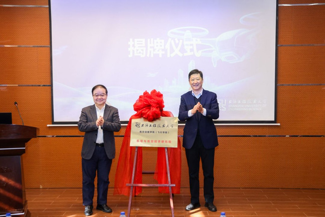 12月26日,“机场与低空经济研究院”成立揭牌仪式举行。校党委书记李江,原上海虹桥综合交通枢纽建设指挥部总工程师、原副校长刘武君,副校长许开宇出席活动。党办主任、统战部部长高锡文,科研处处长郑树彬,航空运输学院(飞行学院)领导班子和师生代表共同参加活动。仪式由航空运输学院(飞行学院)院长李程主持。