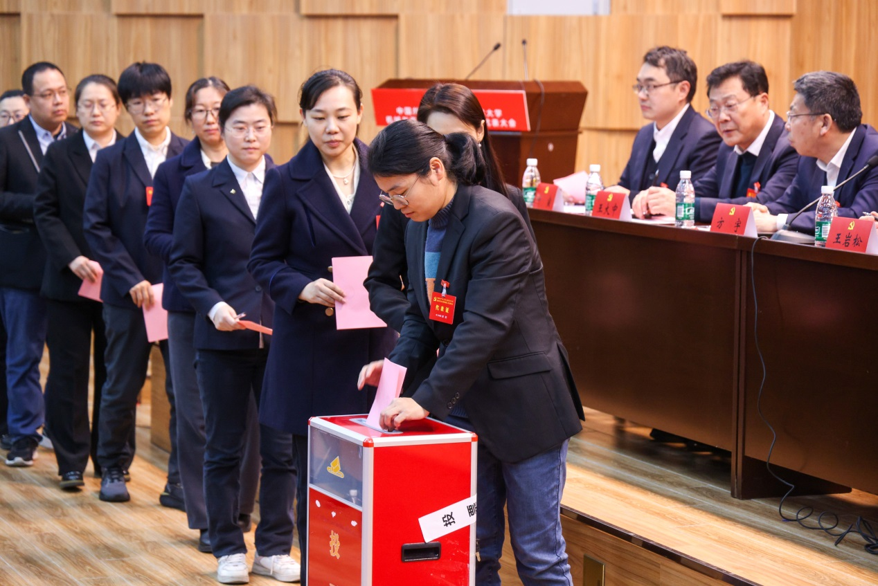 大会现场,党员们认真聆听、审慎思考通过了选举办法及监票人、计票人名单,手持选票,神情庄重地走到投票箱前,郑重投下自己的一票。当新一届党委委员会名单公布的瞬间,会场内响起阵阵热烈掌声。