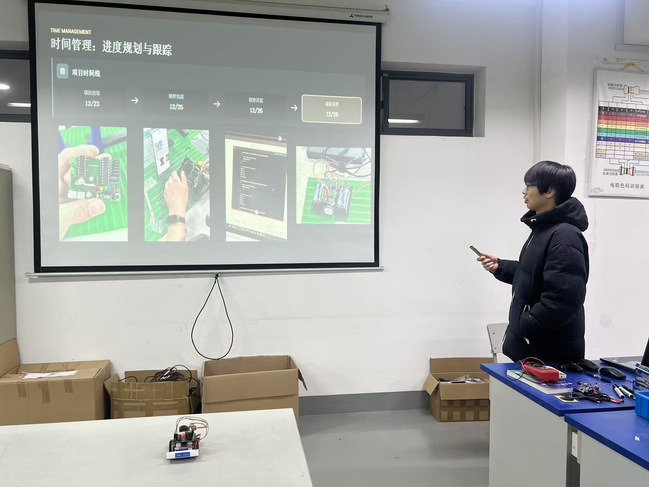 项目答辩环节,各小组系统阐述了设计思路、团队分工、成本控制及应用规划。同学们纷纷表示,此次实习不仅锻炼了技术能力,更深刻理解了“需求导向、迭代优化”的工程理念,体会到团队协作与项目落地的重要性。实习过程融合了学科交叉、工创结合与赛课融通,有效激发了学习主动性,增强了实践教学的趣味性与挑战性。