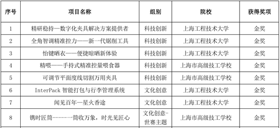 1月13日,由上海市教委主办的第三届上海市职业院校学生创新创意大赛获奖名单正式公布。高职学院在高职组和中职组中共精心选送了50个项目入围市级复赛,最终荣获金奖8项、银奖11项、铜奖13项、优胜奖18项,充分展现了学院创新教育的扎实成效。
