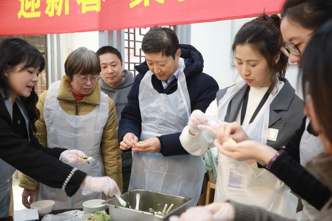 中午11时许,第二餐厅内热闹非凡,校领导与机关部门教职工代表齐聚一堂,开展新春联谊包饺子活动。餐桌上,面粉、馅料等食材摆放整齐,大家分工协作、默契配合,擀皮、包馅、捏形,动作娴熟流畅。校领导与教职工们围坐在一起,一边包饺子一边拉家常,分享工作感悟、畅谈新年期许,现场洋溢着“家”的温暖与团圆的喜悦。一个个形态各异的饺子承载着大家对新春的美好憧憬,一碗碗热气腾腾的饺子传递着学校对教职工的关怀与问候,让每一位参与者都感受到了程园大家庭的温暖。