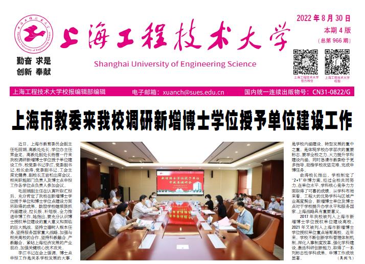 学校坚持内涵式发展,以党建引领学科建设,强化研究生培养,不断提高培养质量;依托上海高校学位点培优培育专项计划,做好博士学位授予单位和博士学位授权点培育建设工作;努力实现“十四五”末基本建成具有学士、硕士、博士完整学位体系的高水平应用型大学的目标。(吴剑飞)