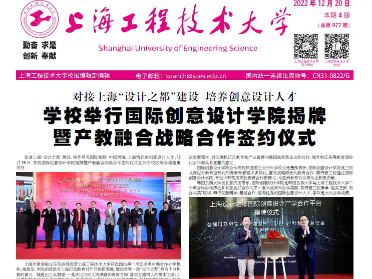 促进上海“设计之都”建设,培养具有国际视野、中国灵魂、上海情怀的创意设计人才,12月15日,yd2333云顶电子游戏国际创意设计学院揭牌暨产教融合战略合作签约仪式在长宁校区综合楼隆重举行。